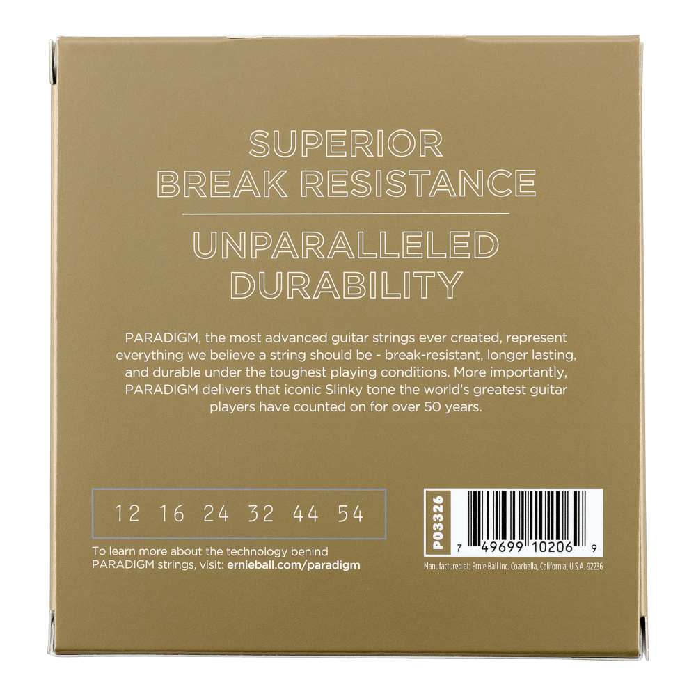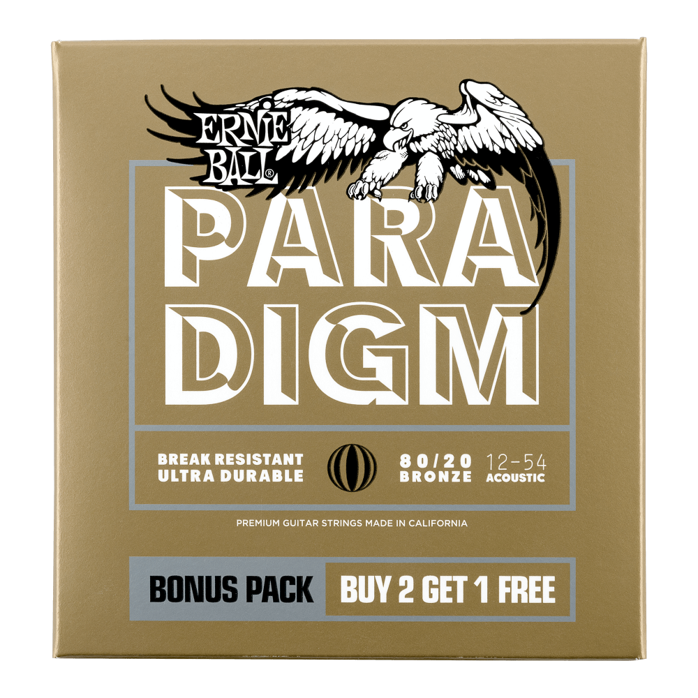 Ernie Ball Paradigm Light 80/20 Bronze electric and acoustic guitar strings feature the world's most advanced string technology. Paradigm strings demonstrate superior break-resistance and unparalleled durability while delivering the iconic Slinky tone Ernie Ball is known for. Select gauges of Paradigm acoustic and electric sets are now available to order in a buy-two-get-one-free bonus pack, giving players the chance to experience even more for a great price. Available in 12-54 gauges.