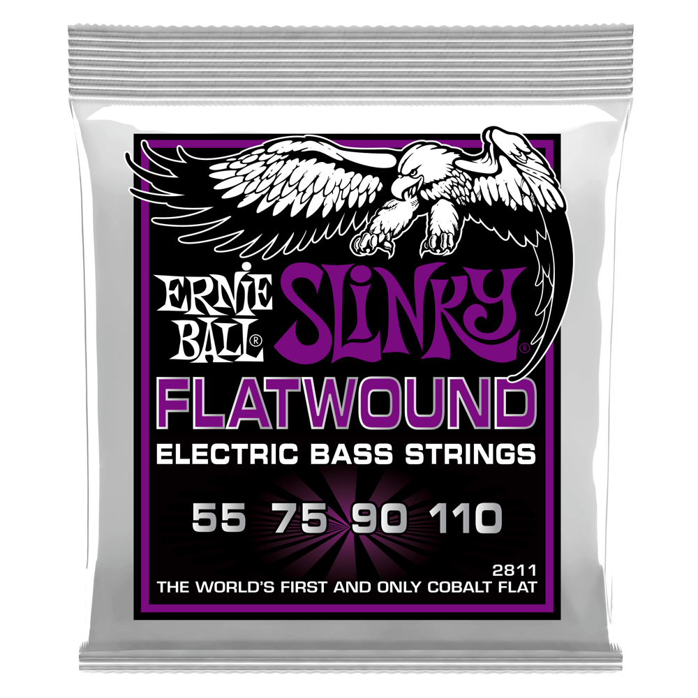 Ernie Ball Slinky Flat Wound Bass Strings combine the smooth feel of traditional flats and the power of Cobalt. Featuring a Superbright Cobalt ribbon wrap, Cobalt under wraps and optimal hex-core to wrap ratio, the new Flat Wound Bass strings are the first flat that actually feels like a flat and sounds like a round. Gauges: 0.055, 0.075, 0.090, 0.110.
