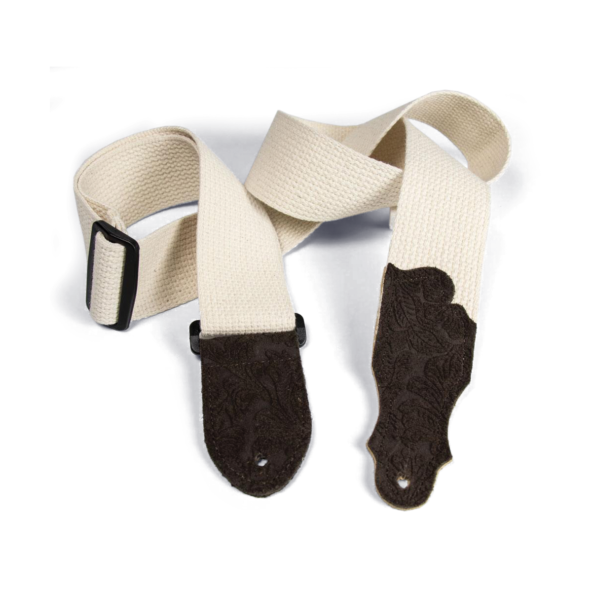 From our popular basic series, this 2” cotton strap is thick and soft for shoulder comfort on long sets. It is uniquely finished with a beautiful embossed suede end tab.