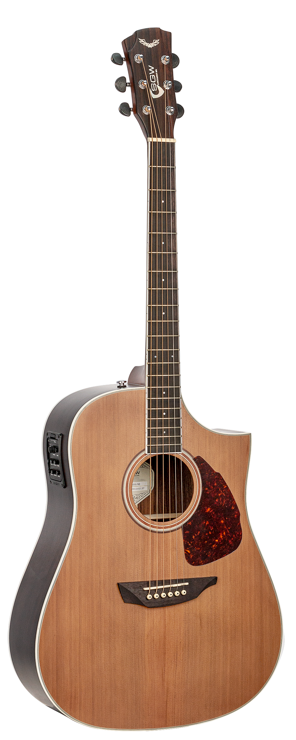 Sharp Florentine cutaway. Select solid cedar top with solid rosewood back and rosewood veneer sides. Thunderflex™ bracing. Bound mahogany neck with rosewood fingerboard. 2 way truss rod. Mother of pearl dot inlays. 5 ply binding. Rosewood bridge. Graph Tech Canada, NuBone nut & compensated saddle. Tortoiseshell scratchplate. Chrome diecast machine heads with ebony buttons. D’Addario USA strings. Fishman pickup and Clearwave 60 preamp with LED tuner, rotary volume control, 3 band EQ, notch & brilliance filter and phase switch. Commemorative “Samick Est. 1958” chrome plate on back of headstock.
