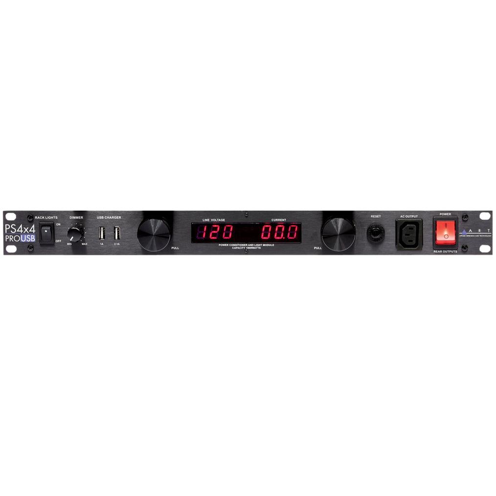 \n \nPresenting the 4×4 PRO USB SERIES Power Distribution Systems from ART. Built on the foundation of the popular 4x4s, the PRO USB SERIES are durably constructed, reliable power conditioners for use in many applications. Wherever power management system is required, the 4×4 PRO USB  SERIES provide the surge protection you need to keep your rack safe from unwanted disruption. \n \nAll PRO USB SERIES models have an additional internal discrete module called APF™ (Advanced Power Filtering) which filters out digital and dimmer hash as well as any high frequency noise that is above the audio range. Some off-the-shelf add-on modules saturate and lose their filtering effectiveness as the load increases, but by using a high power discrete design we were able to create a filter that stays effective over the full operating range. \n \nBy using both Common Mode and Differential Mode topologies in series for the filter design we are able to block virtually all of the unwanted noise that is between the AC line and ground, and also the two sides of the AC line. This has the additional benefit of reducing ground loop problems in your system. High frequency noise currents in particular are highly attenuated in both directions so that any line noise that could be generated by one of your components is not allowed to get back into your main A.C. wiring so if you use a number of PRO USB SERIES Power Conditioners in your setup, you can distribute and isolate the noisy components from the sensitive components in your system. Additionally, any signals above 10kHz are filtered from the line with over 40dB of attenuation above 100kHz and beyond. \n \nPS4X4 PRO USB Applications: \n