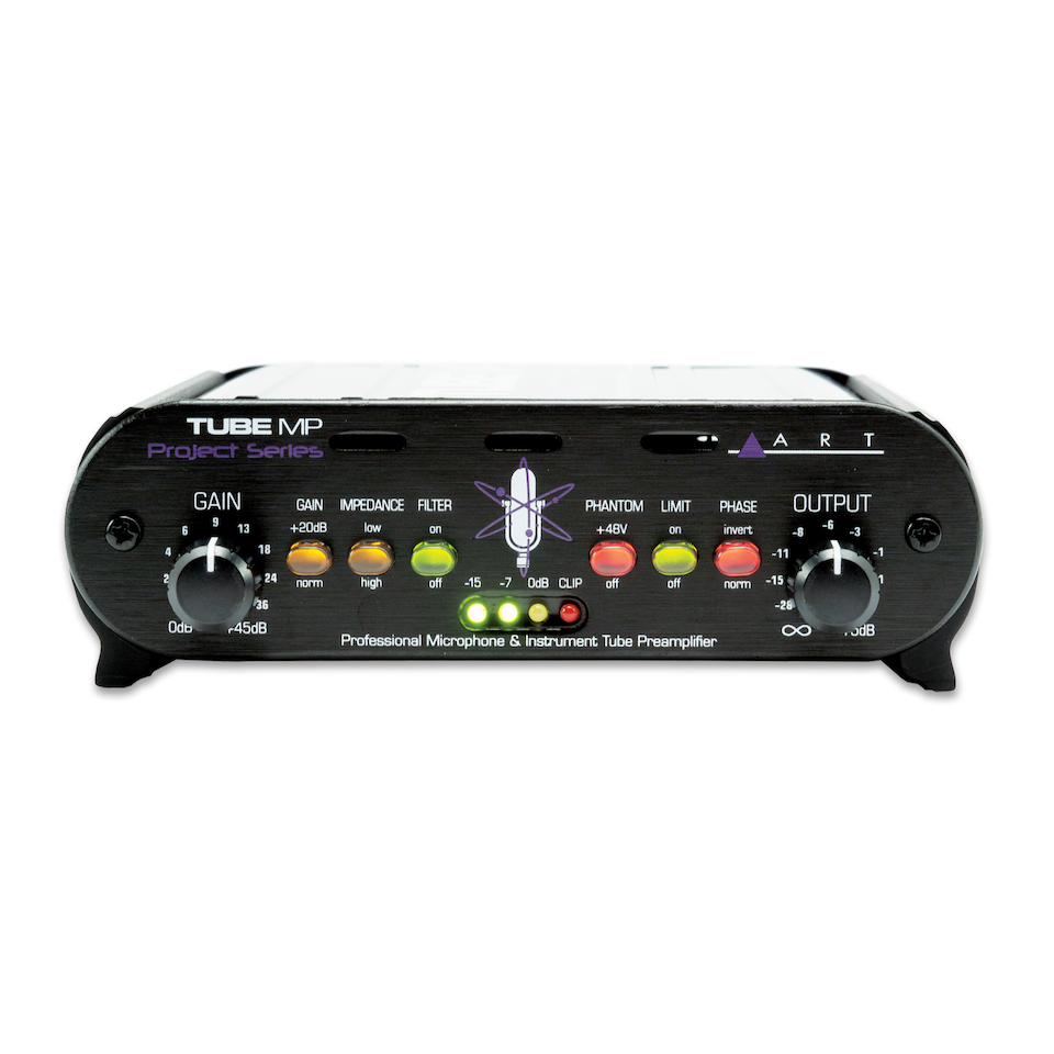 The Tube MP Project Series is a professional quality tube preamp that lets you connect microphone, instrument, and line level signals to a mixer or other audio input. This hybrid design is the latest in a long line of ART tube preamps. We took our legendary Tube MP series and updated every aspect of the design, inside and out, while still maintaining a compact, reliable, and cost effective product. From the new all-aluminium stackable chassis to the precision LED level metering circuitry, we have improved virtually every aspect of our already successful Tube MP series. With up to 70dB of clean musical gain and high output signal drive capability the cold digital world will melt with your mixes! Charge up your creativity with the Tube MP Project Series! \n \nOptional ART SM1 stand mount securely attaches the Tube MP Project Series to any microphone stand for live stage or studio applications is available. \n