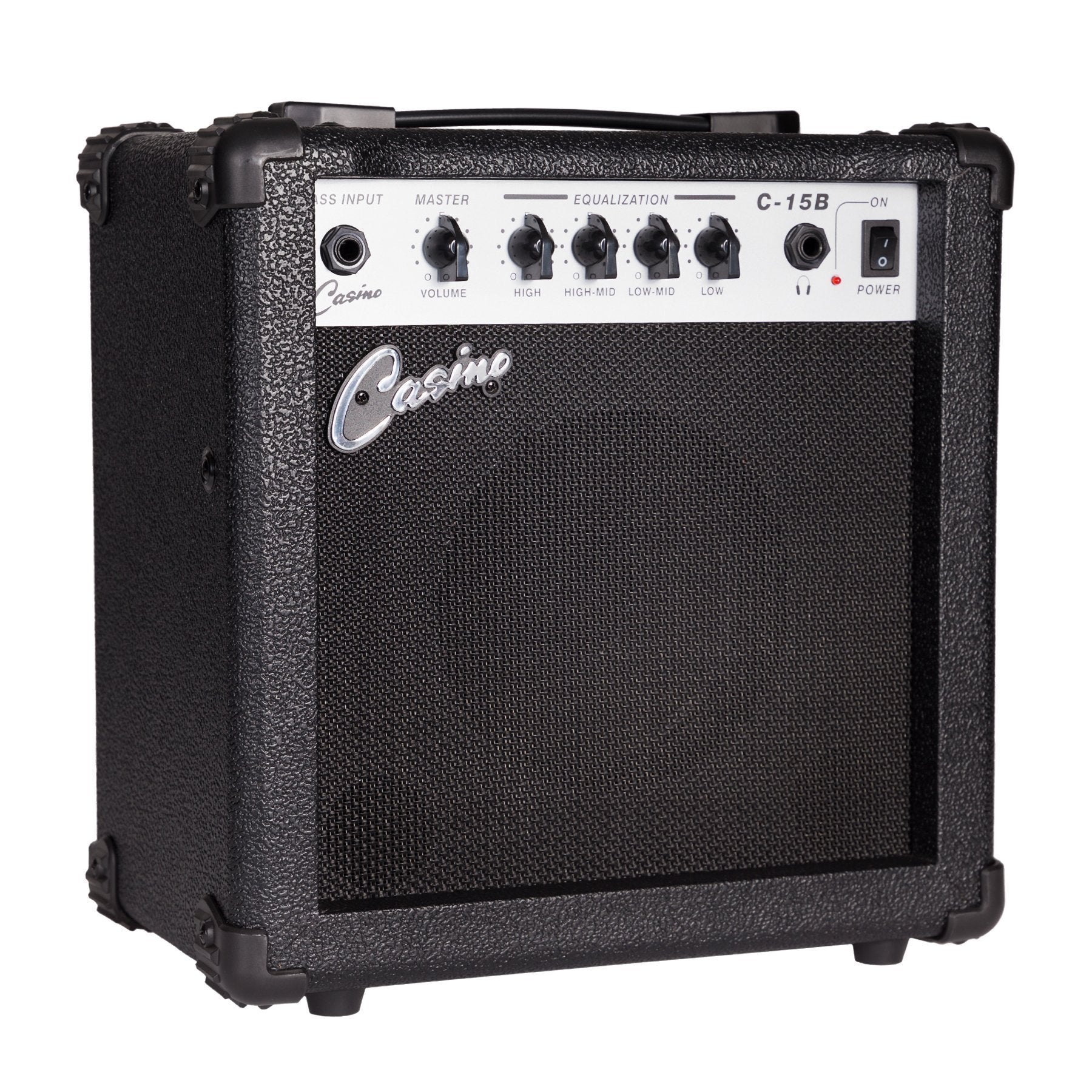 The Casino 15 watt bass guitar amplifier is a compact solid state practice amplifier. With features such as master volume, four band tone stack and headphone output, the 15 watt Casino bass amplifier is perfect for making music without disturbing your neighbours.