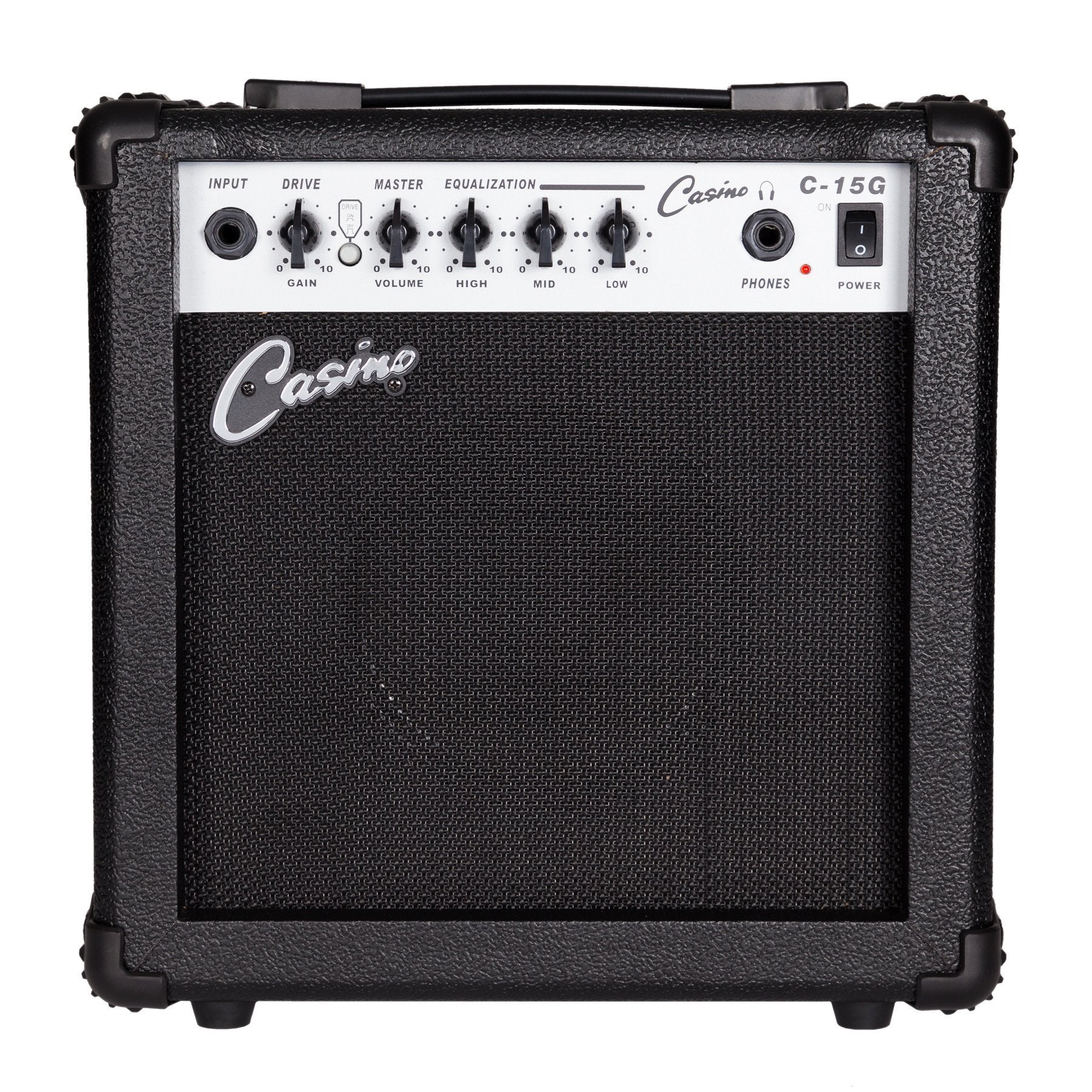 Casino guitar and 15 watt amplifier packs come standard with Casino 15 watt practice amplifier, gig bag, tuner, strap, lead and picks, to ensure you're playing straight away.