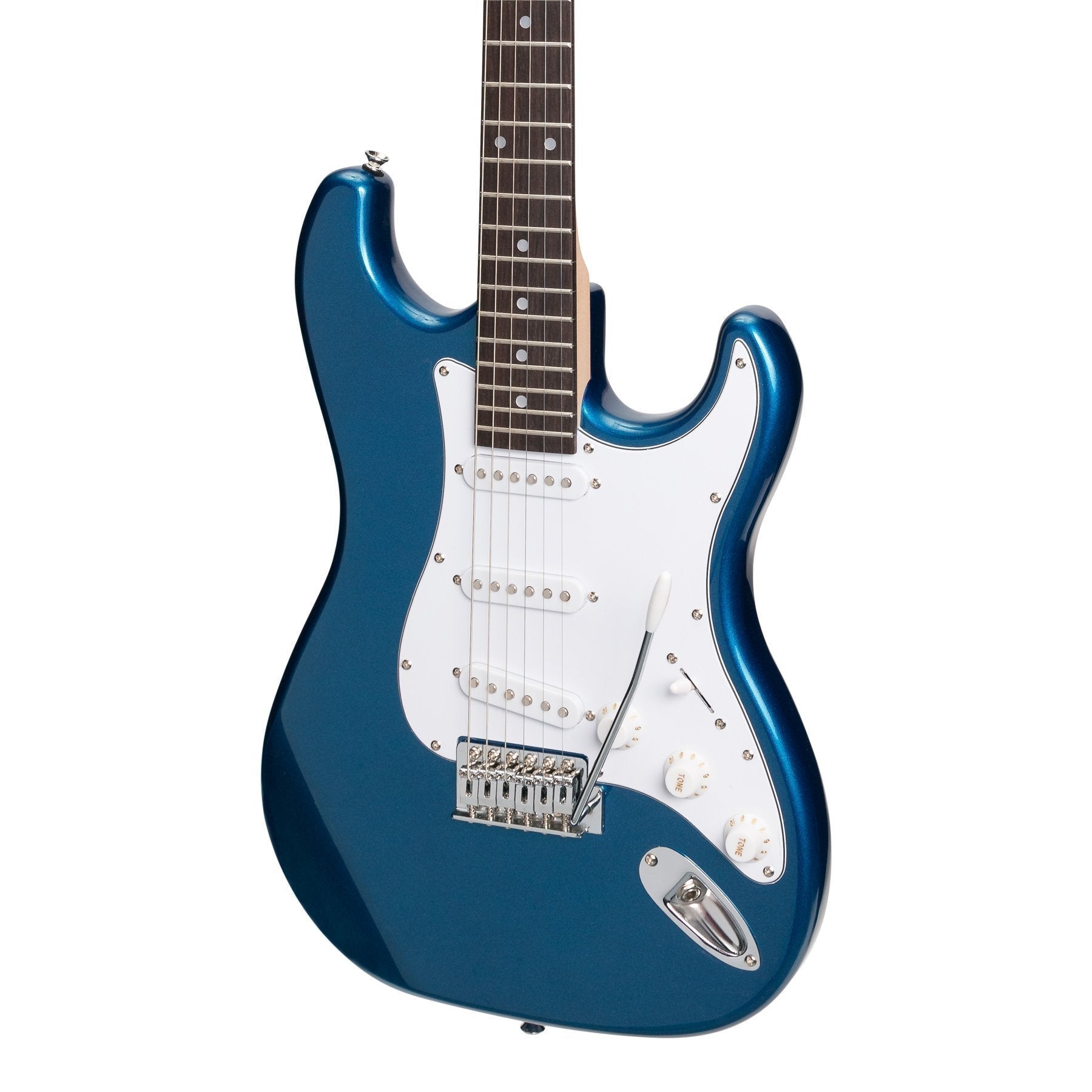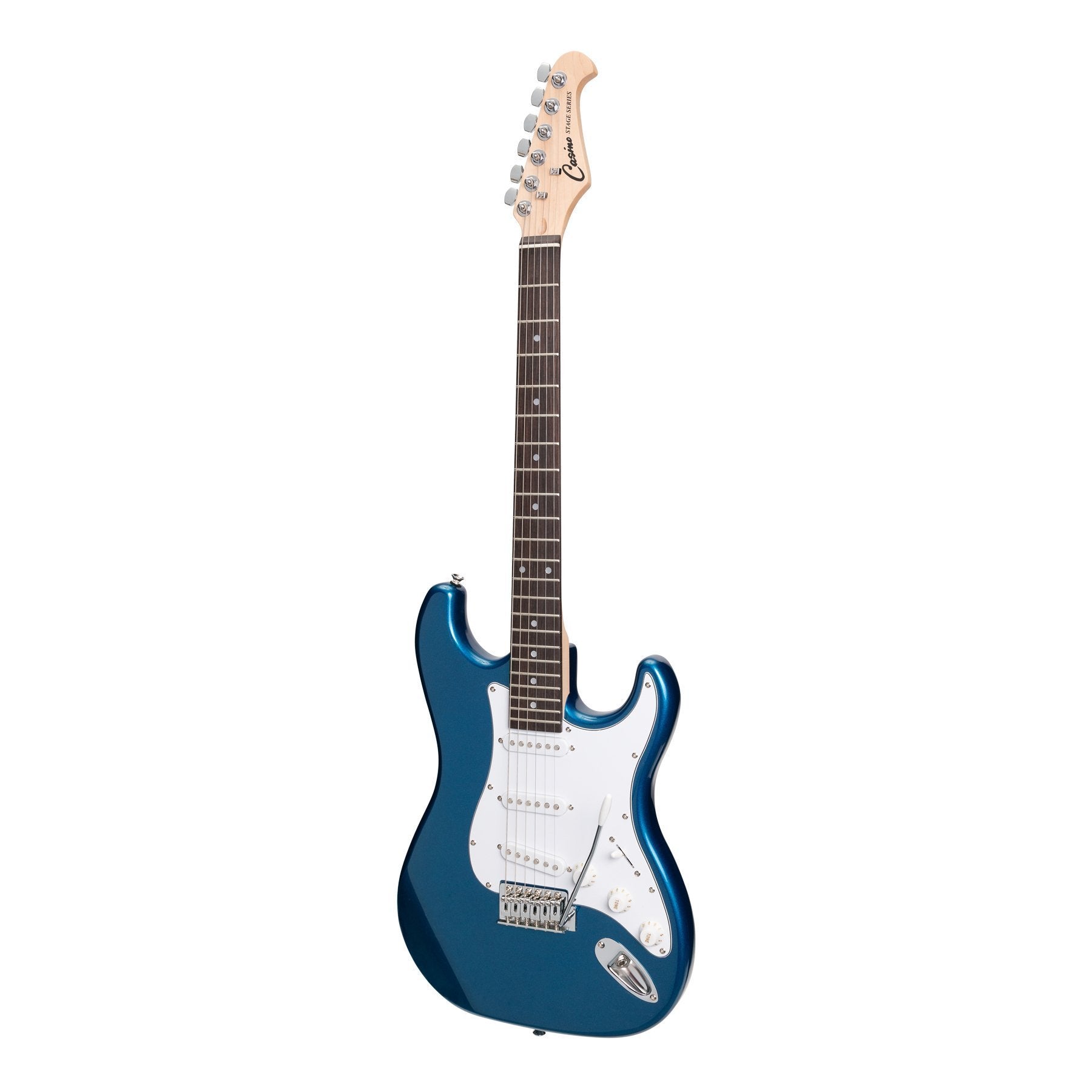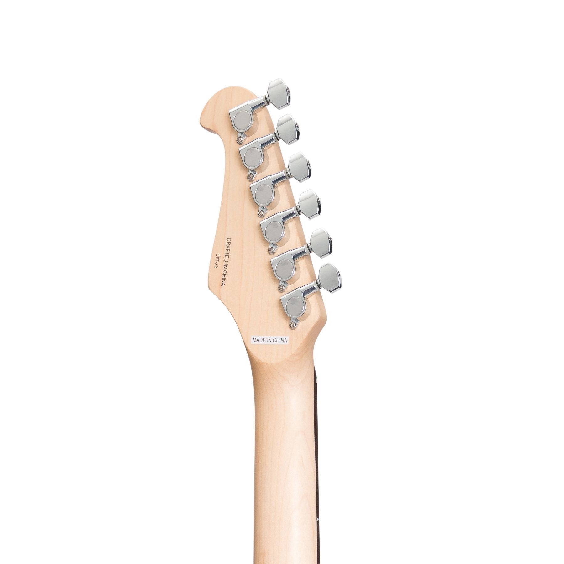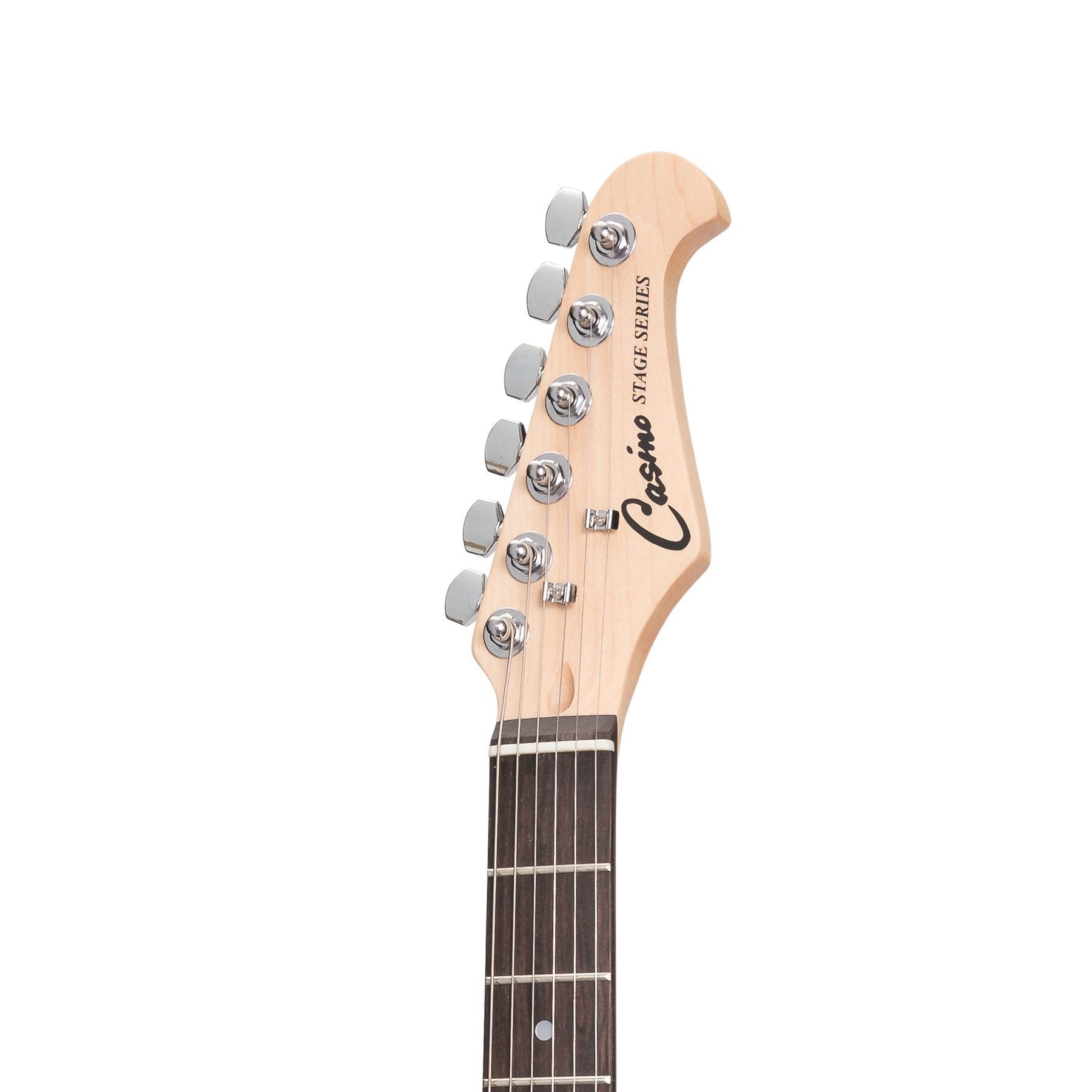 With their iconic body shape, excellent playability and classic tone, the Casino ST series of guitars are a slice of musical history within everyone's budget. Featuring solid Agathis body, Canadian hard Maple neck, Rosewood fretboard, three single coil pickups, traditional 5-way switching, volume and tone control configuration, diecast machine heads, vintage style bridge and tremolo system, the Casino ST series delivers serious guitars that are accessible to any player.