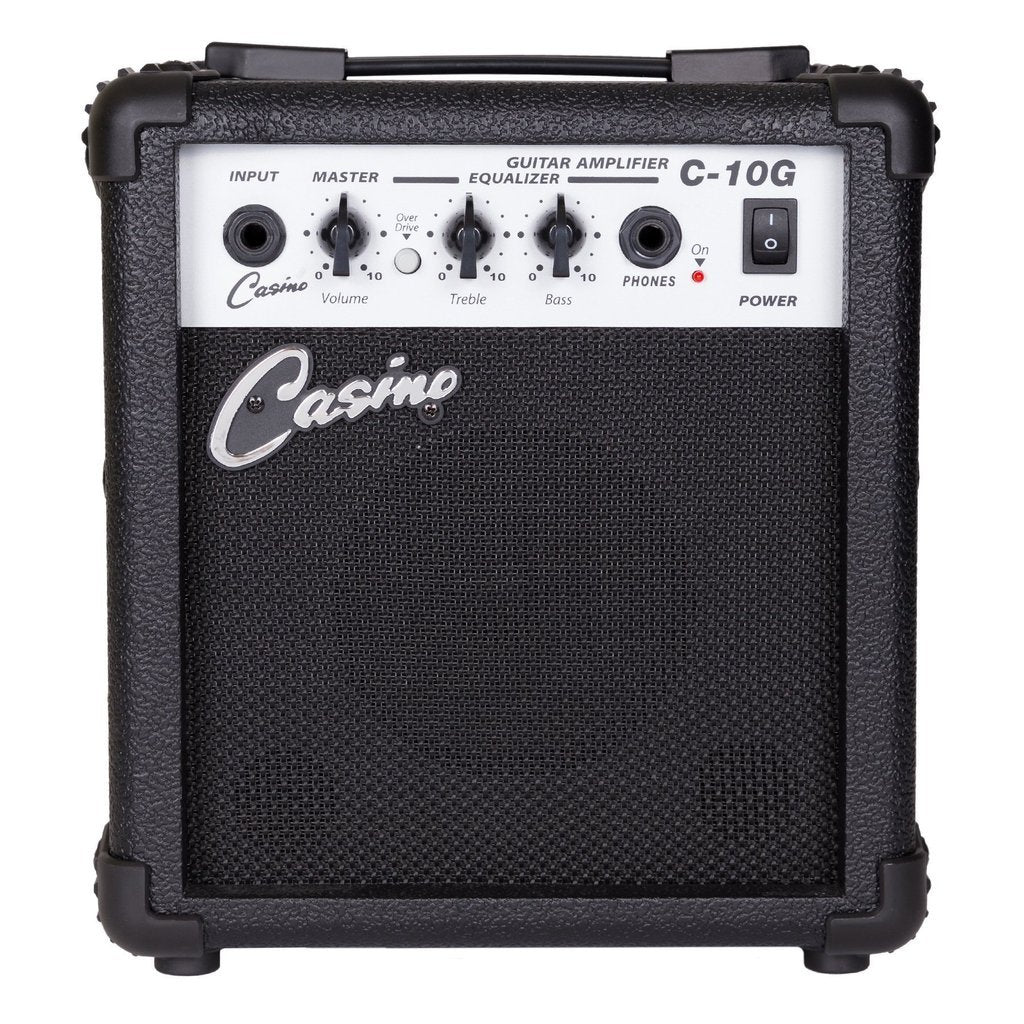 Casino guitar and 10 watt amplifier packs come standard with Casino 10 watt practice amplifier, gig bag, tuner, strap, lead and picks, to ensure you're playing straight away.