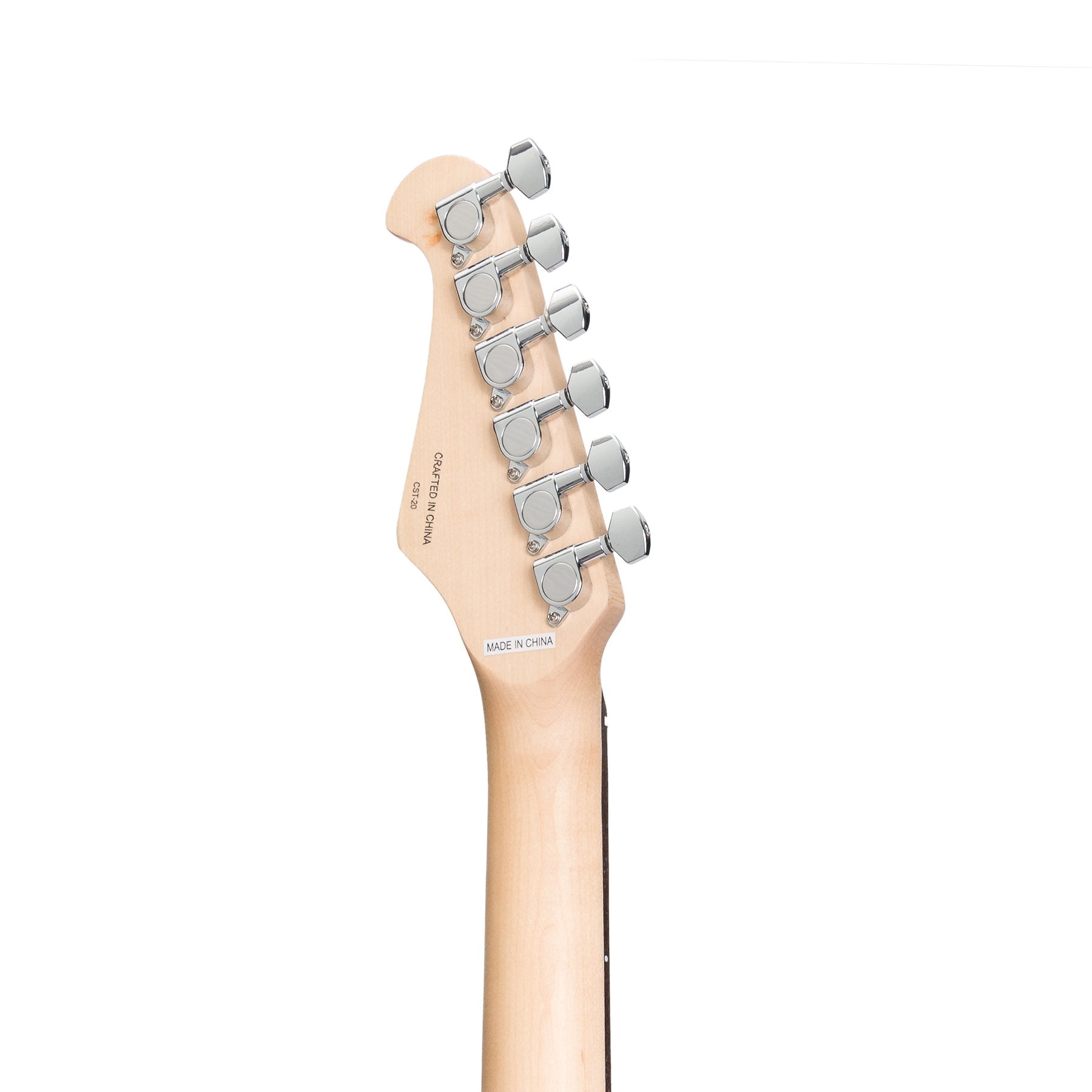 Featuring solid Agathis body, Canadian hard Maple neck, Rosewood fretboard, three single coil pickups, traditional 5-way switching, volume and tone control configuration, diecast machine heads, vintage style bridge and tremolo system, the Casino ST series delivers serious guitars that are accessible to any player.