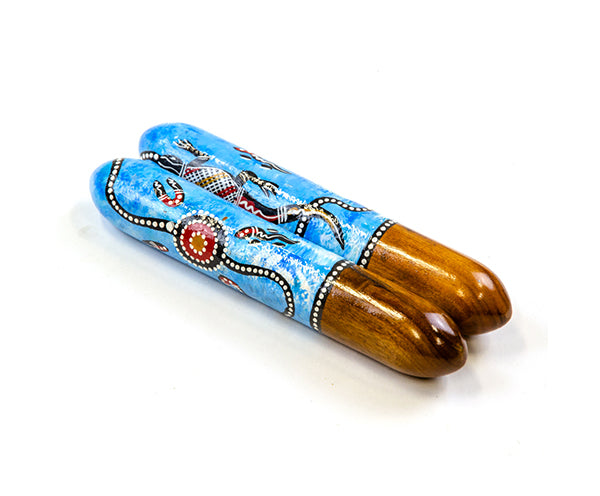 Clap Sticks - Rounded Stick. Traditional Artwork. Approx 21cm