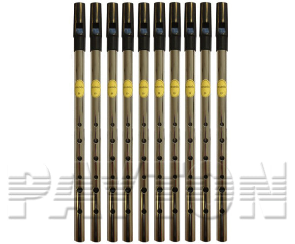 Box of 10 Feadóg Nickel "D" whistles. All whistles are hygiene sealed. Ideal for bulk purchase by schools or other such groups.