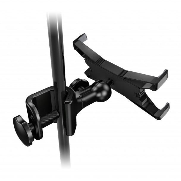 IK’s iKlip Xpand is an adjustable tablet holder that uses four expandable grips that can hold most large tablet sizes securely. Its rubberised “Gorilla Grip” technology holds your iPad or tablet on a microphone stand, and its ball joint design allows for infinite adjustment so you’ll always have an optimal viewing angle.