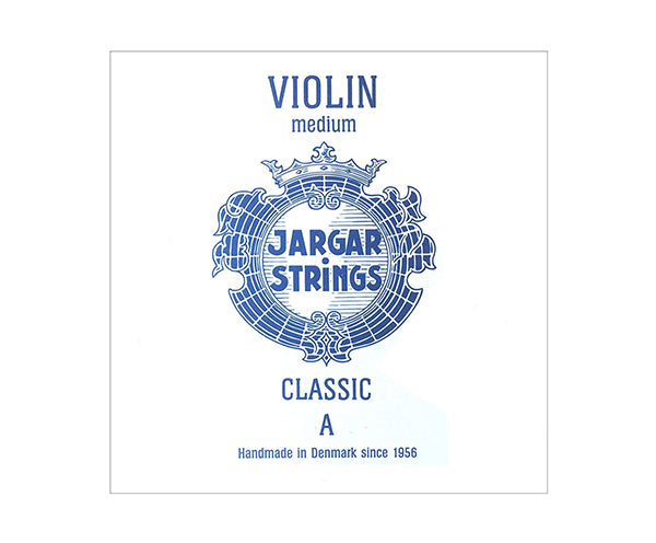A - Medium "Jargar" Violin Strings. Famous Flexi-Metal strings from Denmark. Delivers a bright full sound with rapid response. (Blue pack)