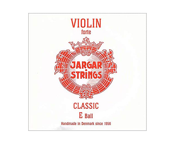 E - Forte, heavy "Jargar" Violin Strings. Famous Flexi-Metal strings from Denmark. Delivers a bright full sound with rapid response. (Red pack)