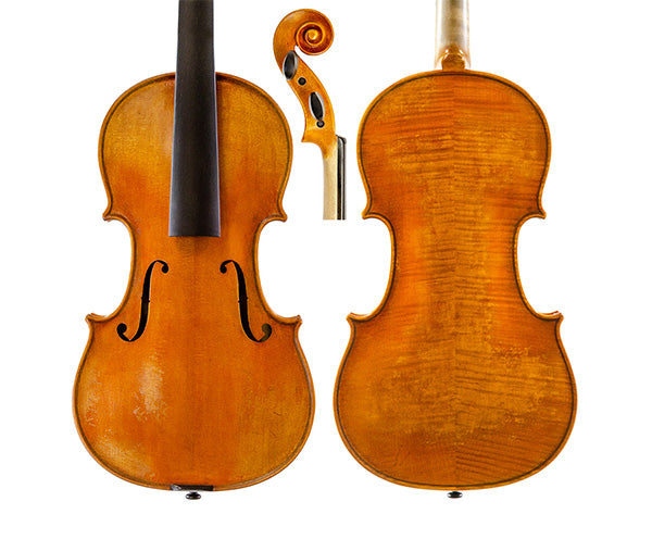 \n‘Makers’ instruments feature carefully selected well-flamed 2-piece maple backs with matching neck-blocks and well-seasoned, close and straight grained spruce tops for use in their small workshop specialising in plate graduating and tonal excellence. Their hand-applied oil varnish and subtle antiquing is outstanding. With a limited number of instruments produced yearly, the fine workmanship is very apparent both tonally & in appearance with each proudly-made instrument.
