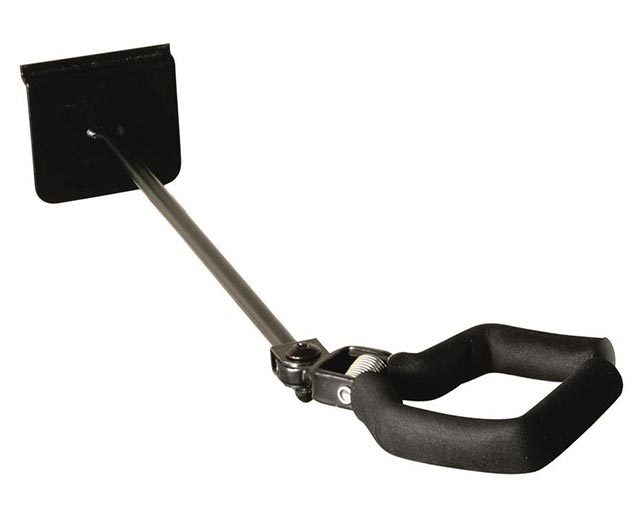 A staple of every showroom. Universal adjustment to hang guitar facing left, right or straight. For use on slat wall, finished in black and features black velveteen rubber padding. Notches at 90°and 45°left or right. Flip-It®yoke flips up for ease of use.