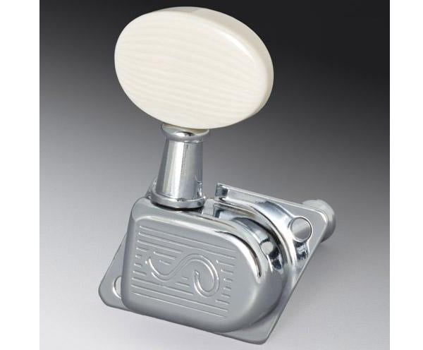 This new line of machine heads, bearing the legendary "S", unifies classic beauty with the quality that is synonymous with Schaller.\n\nThe "Classic Deluxe" is closely based on the design and dimensions of the Selmer company's machine heads of the 1930s. The top-quality mechanism of the machine head and our ultra-rigorous quality control process combine to make this a truly cutting-edge line. Gear ratio 1:14.\n\nDesigned using a traditional template, this new line combines classic, elegant aesthetics and luxurious details with innovations that make it sturdy and reliable. \n\nThe finely-structured buttons, with their timeless oval shape, are made of high-grade polymer material. The low tolerances and high degree of technical precision mean that the mechanical components provide a lifetime of precise action.