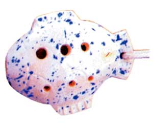 Ocarina by schwarz - glaze fish "G". Made in Austria by Schwarz. Hole for neck cord. Glazed surface and fish shape.