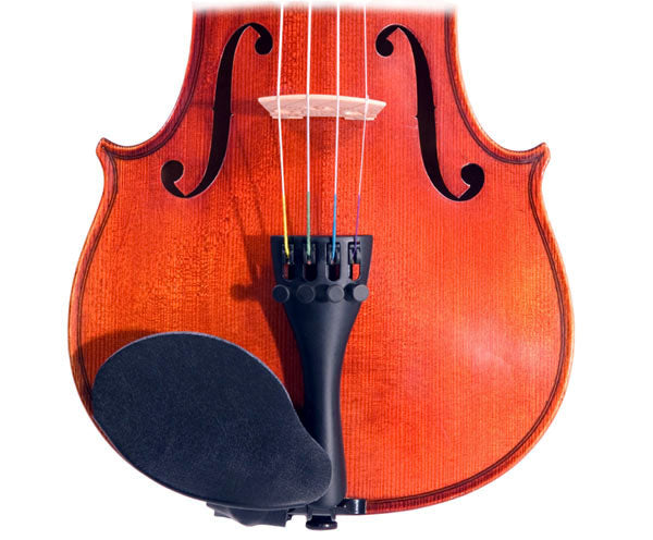 "Special" model chinrest by "Wolf" . Designed to be skin friendly with greater comfort and grip. Hard surface. Can either be placed on left or right of the tailpiece. For violin/viola. Made in Holland by Wolf.