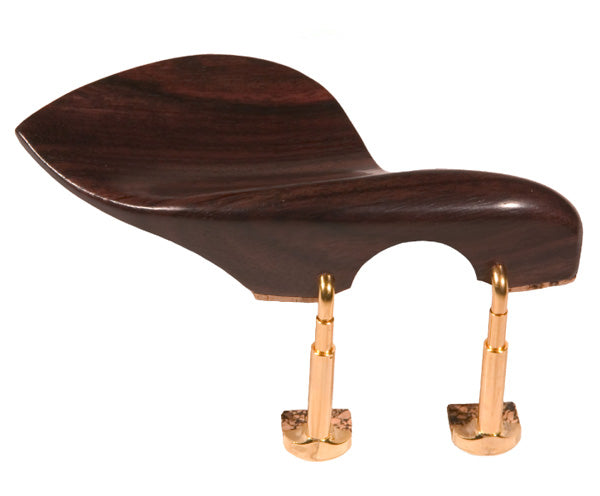 Wolf Strad model rosewood chinrest with Wolf patented nickelplated feet (shown here with Gold feet). Fits both violin and viola. Made in Holland.